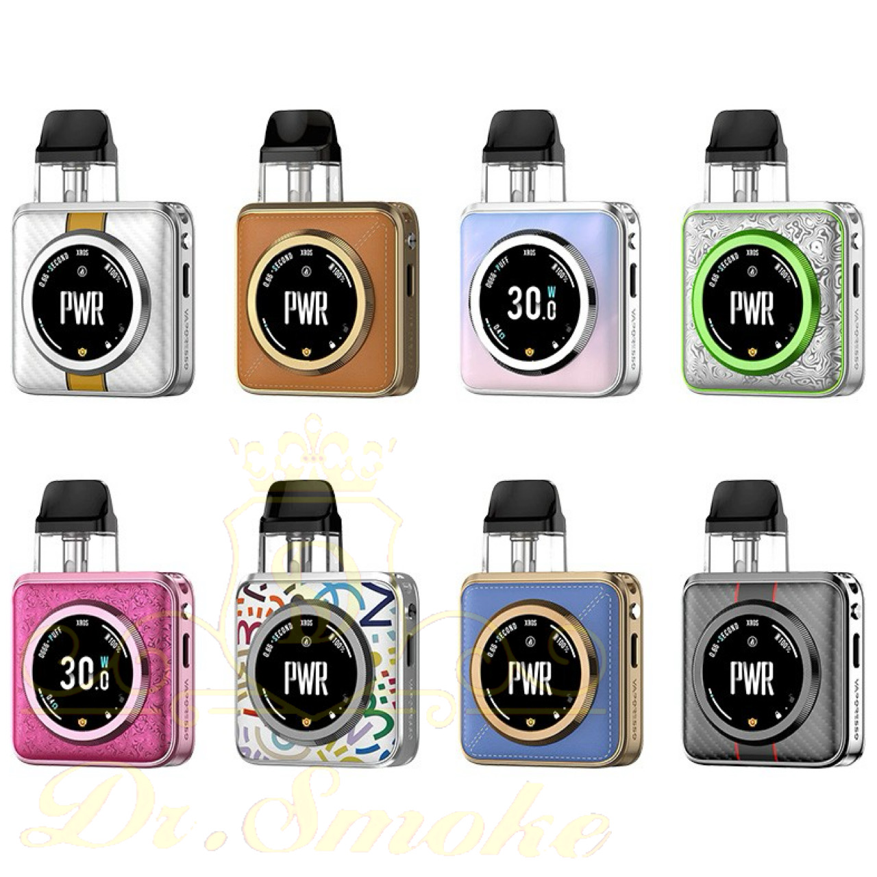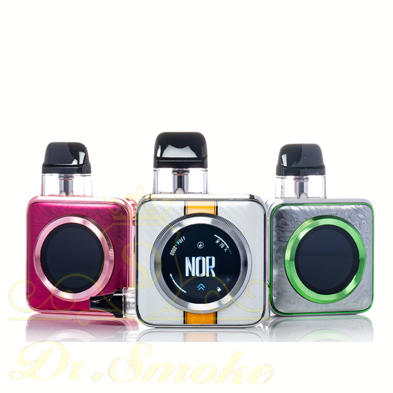 سه دستگاه Vaporesso Xros Nano 5 با پرداختهای ممتاز مختلف به نمایش گذاشته شدهاند که گزینههای طراحی شیک و زیبای Xros Nano 5، از جمله نسخههای طرحدار، حکاکیشده و متالیک را به نمایش میگذارند.